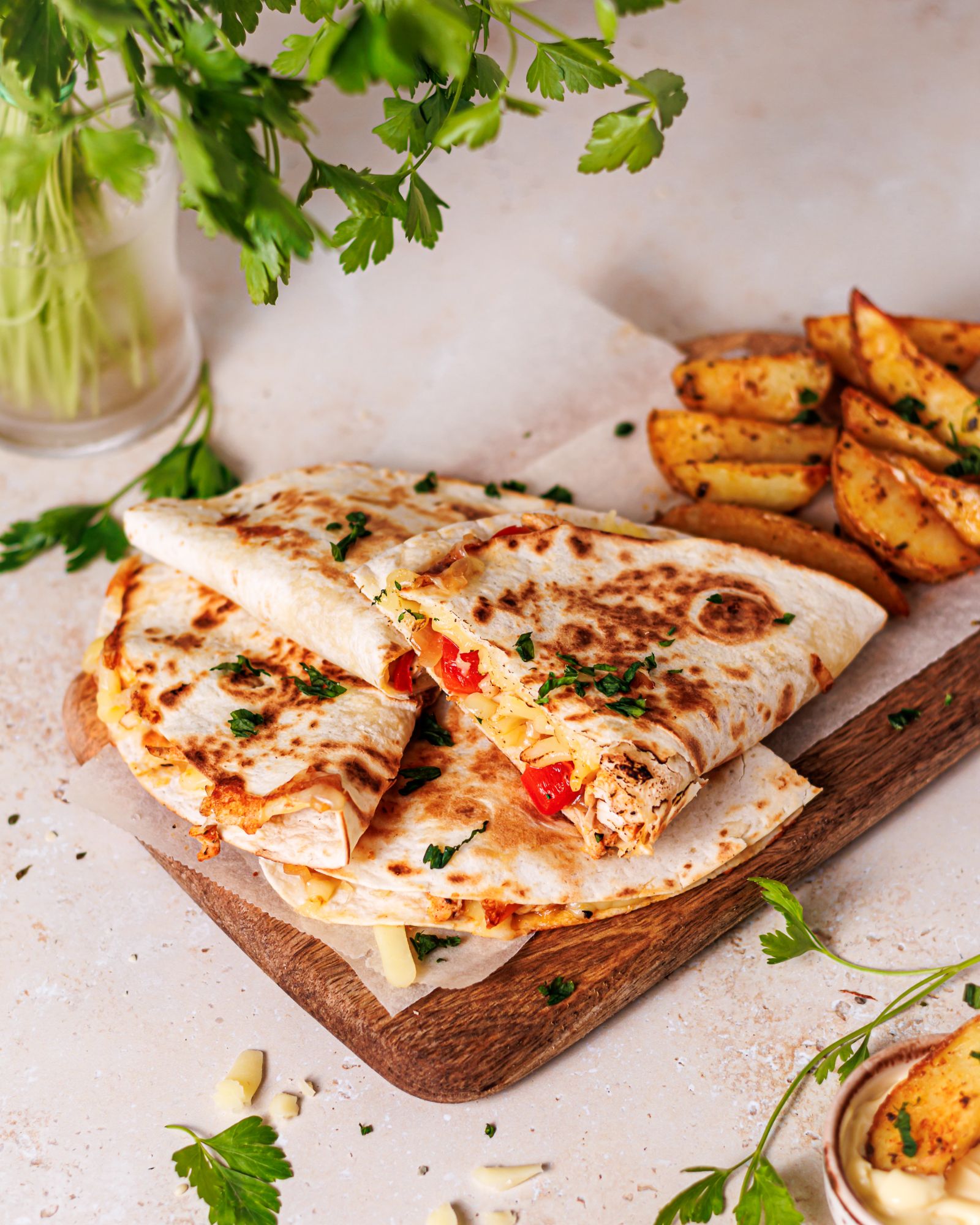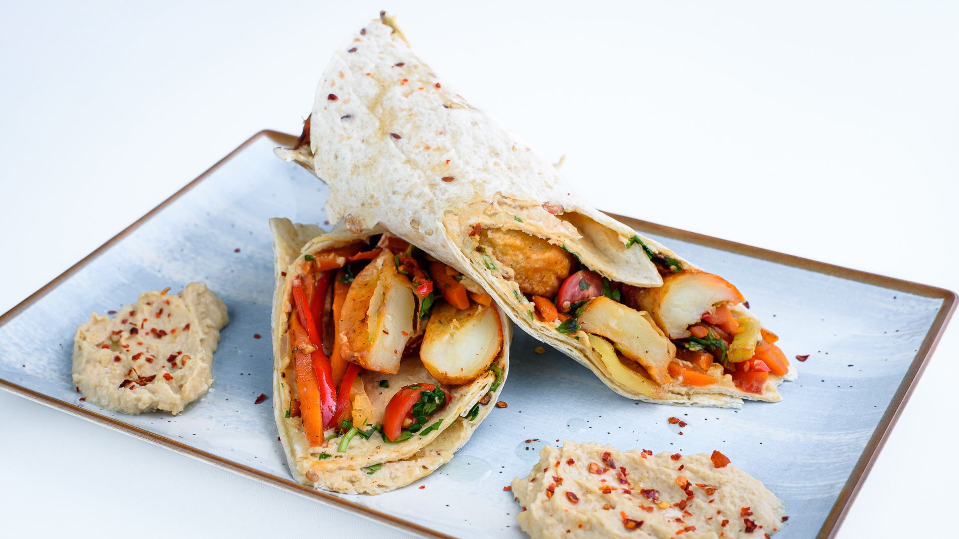 Ingrediente:Cartofi la cuptor -200g, Piept de pui dezosat -100g, Lipie libaneza -80g, Cascaval Dalia Ibanesti