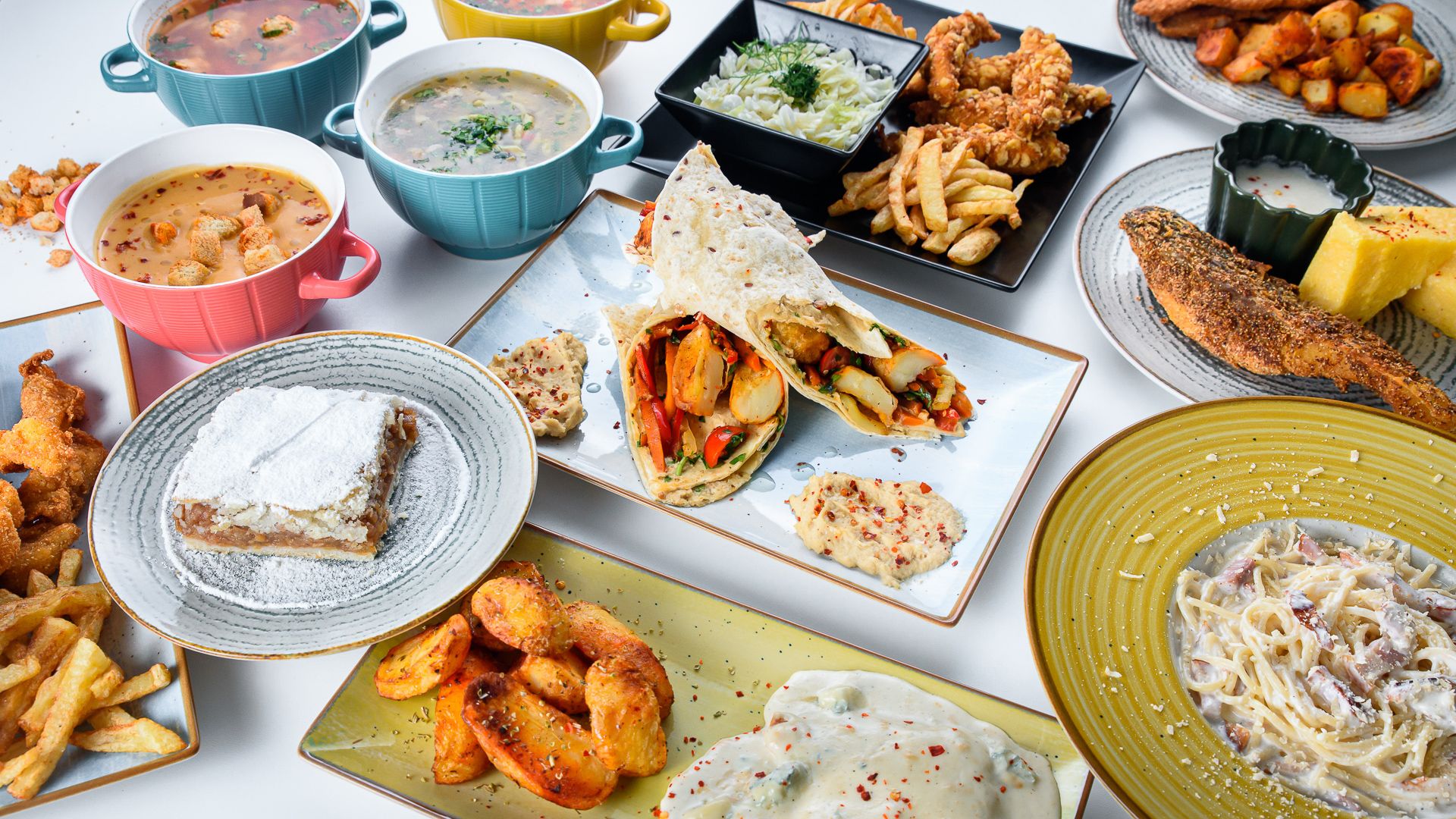 Completați-vă masa cu garnituri, sosuri, pâine, salate și alte produse delicioase pentru o experiență culinară completă.