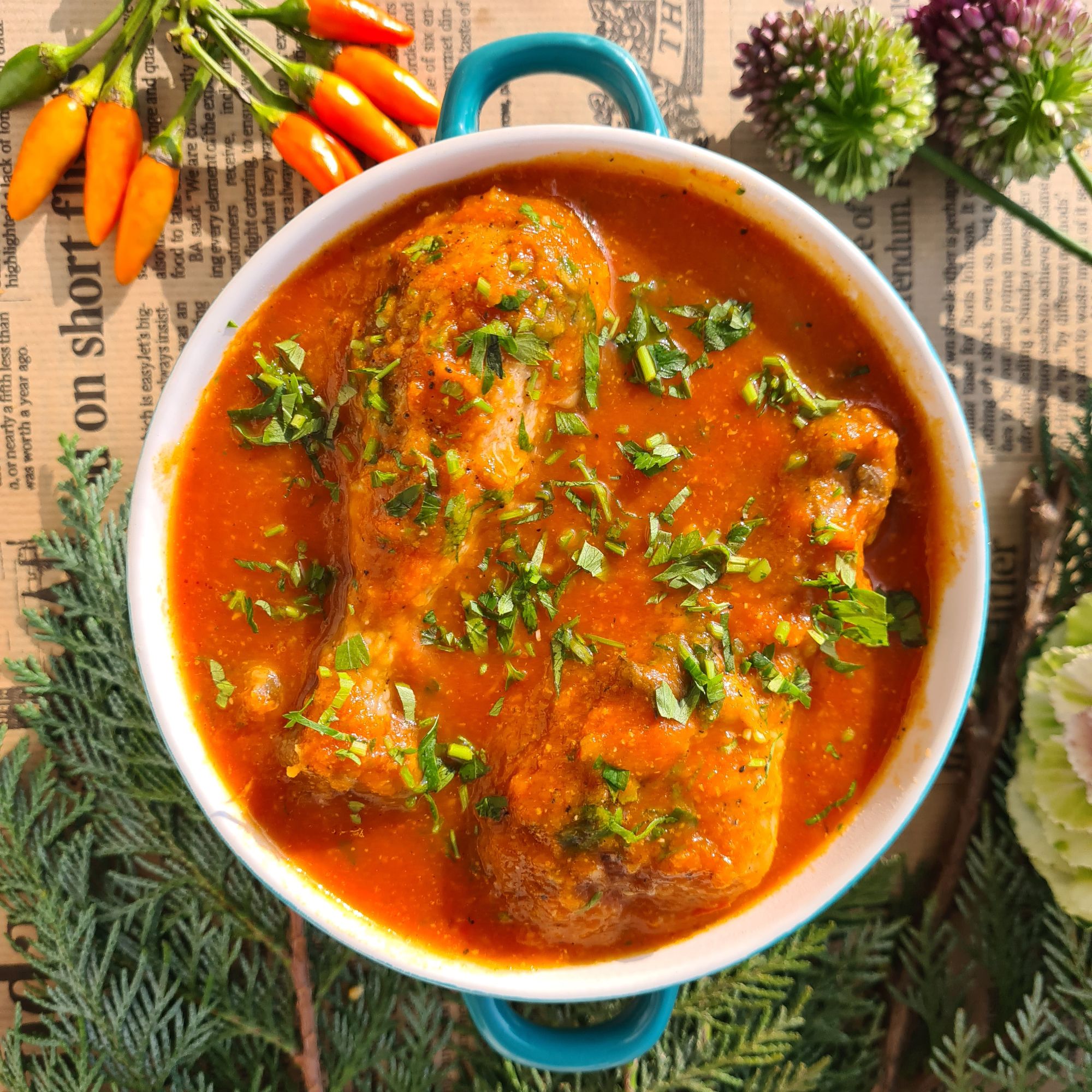 Ciocanele de pui cu piele -100g (), Rosii cuburi -40g (), Sare de masa -3g (), Piper negru -1,5g ()