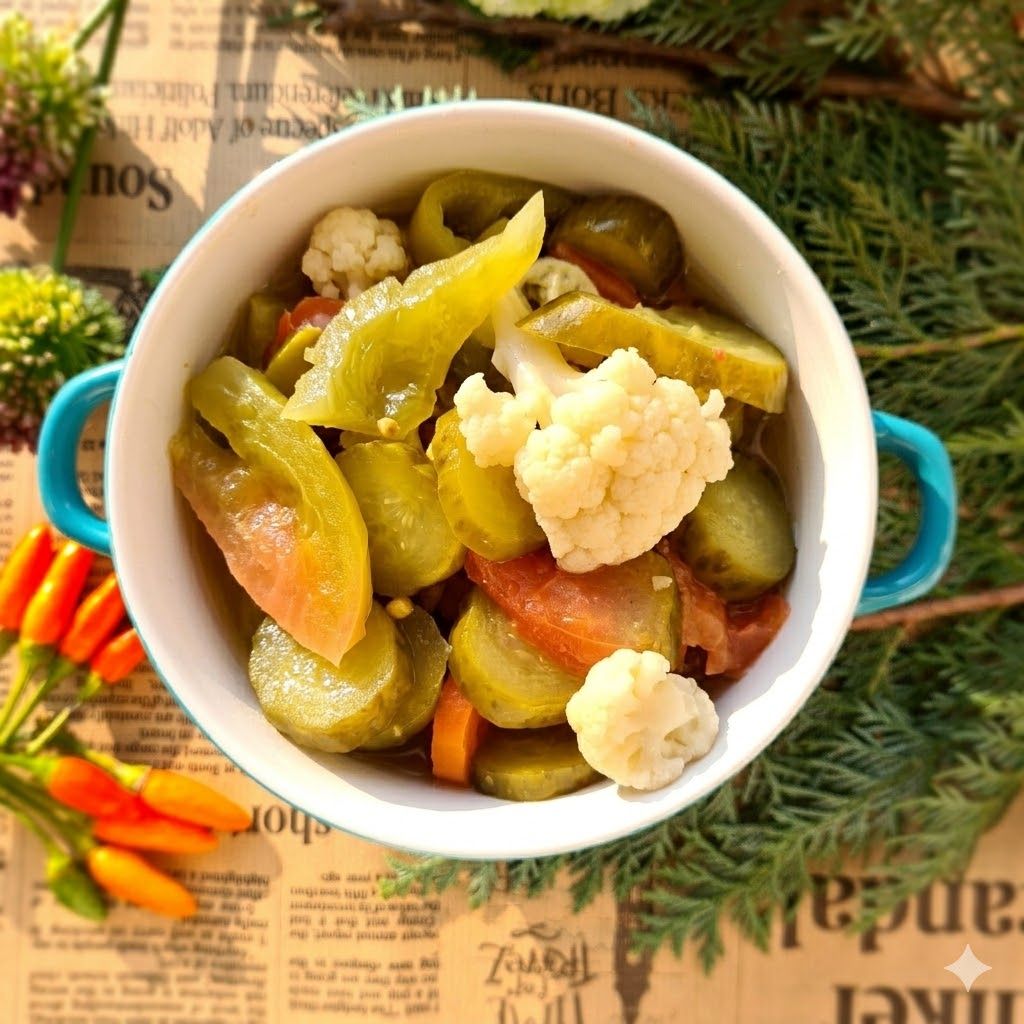 Ingrediente:Castraveti -65g (), Zahar alb -3g (), Sare de masa -3g (), Boabe de mustar -2g ()